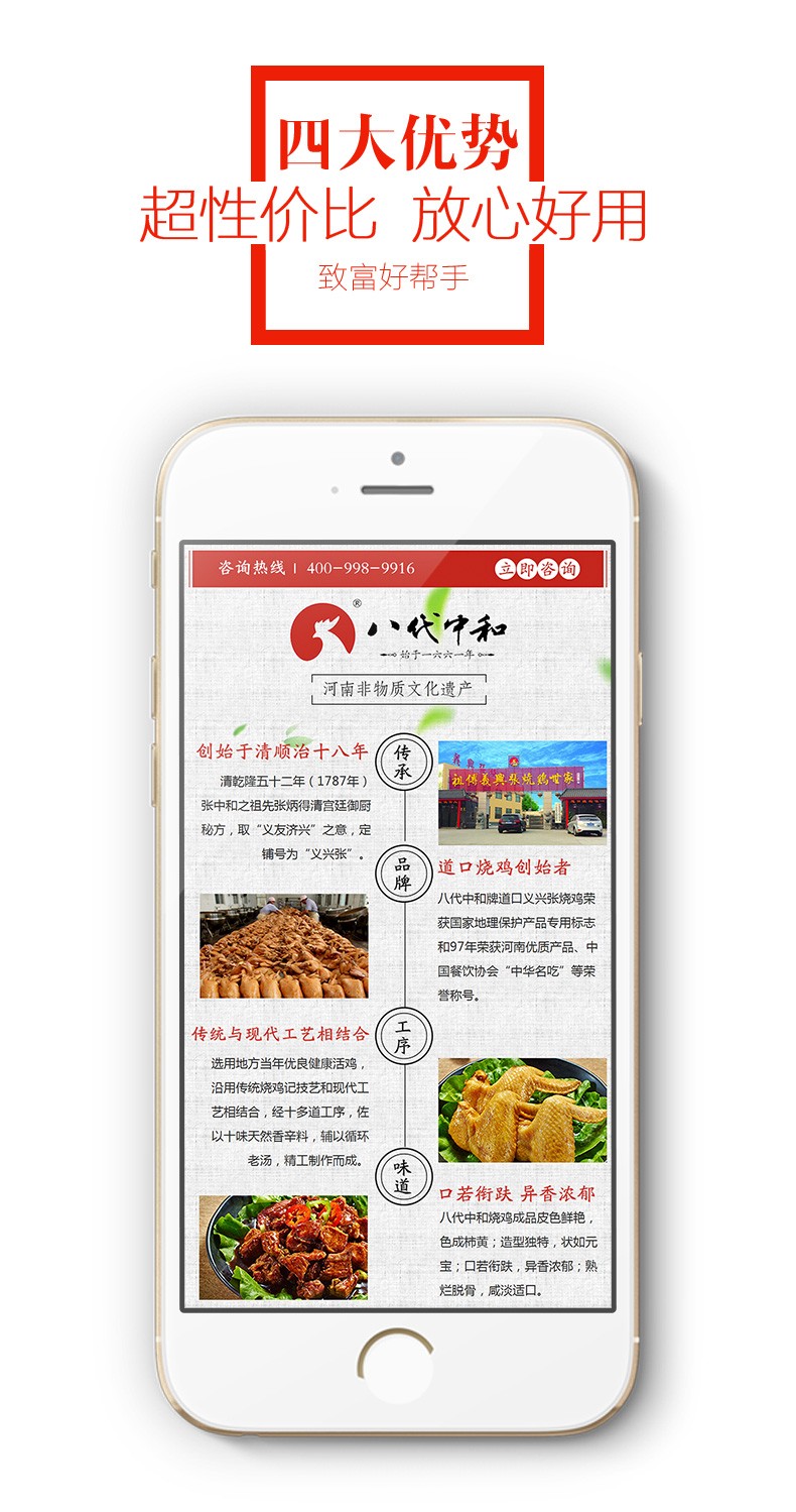 本公司生產(chǎn)道口燒雞系列產(chǎn)品,及生產(chǎn)、加工、營銷、連鎖、加盟于一體的全國性連鎖股份制民營企業(yè)。已獲得國家食品生產(chǎn)許可證,通過ISO9001國際質(zhì)量管理體系認(rèn)證。