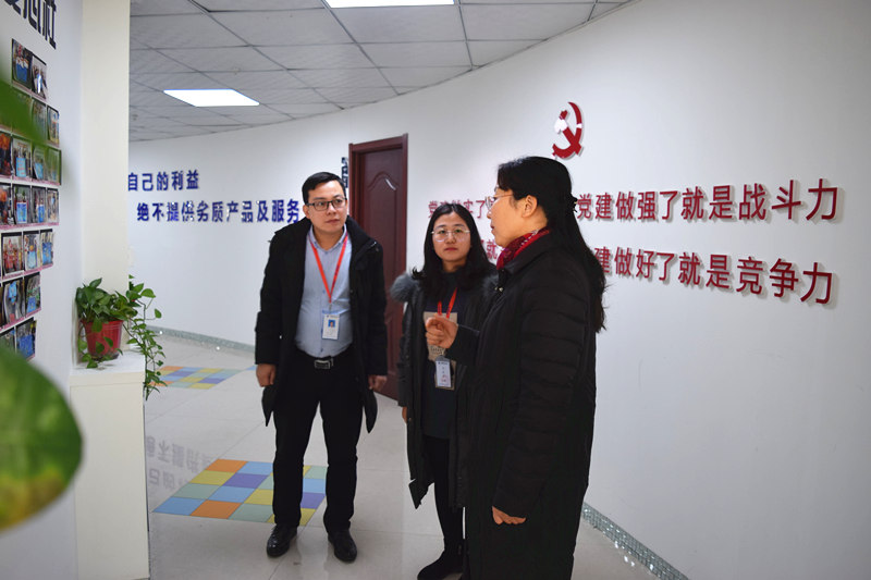 劉亞芳總監(jiān)為領(lǐng)導(dǎo)介紹公司各個(gè)部門(mén)中的職能與詳細(xì)工作,公司中各個(gè)工作崗位上都有黨員的身影,隨處可見(jiàn)黨員示范崗,
