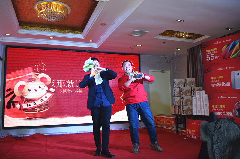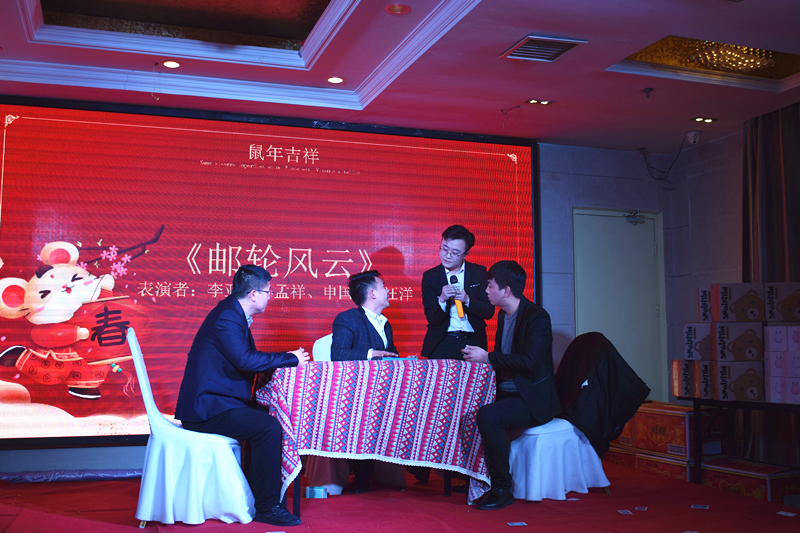 簽到篇 看到嗎?大獎已經準備好了??! 美酒美食上桌 簽到了小伙伴們!! 一聲簽到了,瞬間排起長龍! 美麗帥氣的主持人準備開場! 2020,恭喜發(fā)財,萬事如意,笑口常開! 大獎非你莫“鼠”! 節(jié)目篇 一聲開門紅,開啟節(jié)目篇,將答謝會的熱情推向波高潮!祝福大家來年紅紅火火??! “歌神”一亮相,小迷妹們立刻集結,演唱會模式瞬間開啟, oh my god!唱的也太好聽了吧! 營銷部小品《郵輪風云》,完全顛覆了日常形象, 妥妥的小品“扛把子”誕生了! 吉他彈唱一首《晴天》,把我們瞬間帶進美好的校園愛情的回憶,青峰人真是太多才多藝! 百度推廣部帶我們一起左邊畫個龍,右邊畫一道彩虹,兩個食指就像兩只穿天猴,指向閃耀的燈球!??! 游戲篇 愛的魔力轉圈圈,一條大紅布圈起明年的好運來! 氣球運杯,你來我往,一會兒運氣爆棚! 好運連連,一件大T恤,連接起你我他!happy!! 篇 千呼萬喚篇即將來襲,你可能不知道,大家因為緊張的手都在顫抖! 然而,你可能想象不到,今年的大獎在輪就被抽走了?。?!臺下的小伙伴們,瞬間心死~~~ 他們其中有人歇完產假回來就上了一天班,就拿了一等獎, 還有人前一天晚上說如果我得了大獎怎樣怎樣,然后夸下的??诰屯蝗粚崿F了............ 看到特等獎的劉冉了嗎?我們已經決定組團去他家看電視了........ 哈哈哈哈! 頒獎片 付出總會有收回,小伙伴們來年繼續(xù)加油哇! 等一下,還有我們的神秘大禮 桶桶都旺! 祝愿大家統(tǒng)統(tǒng)都旺啊! 王總致祝酒詞希望大家凝心聚力,再創(chuàng)輝煌! 開啟今天的晚宴嘉年華! 讓我們共同舉杯!迎接2020! 后,祝福大家 鼠年送你大元寶,財源滾滾往家跑; 鼠年送你福滿多,和家幸福好運來; 鼠年送你紅綿襖,身上暖暖心里暖; 鼠年得到祝福多,一年順心萬事和! 新的一年,非你莫“鼠”