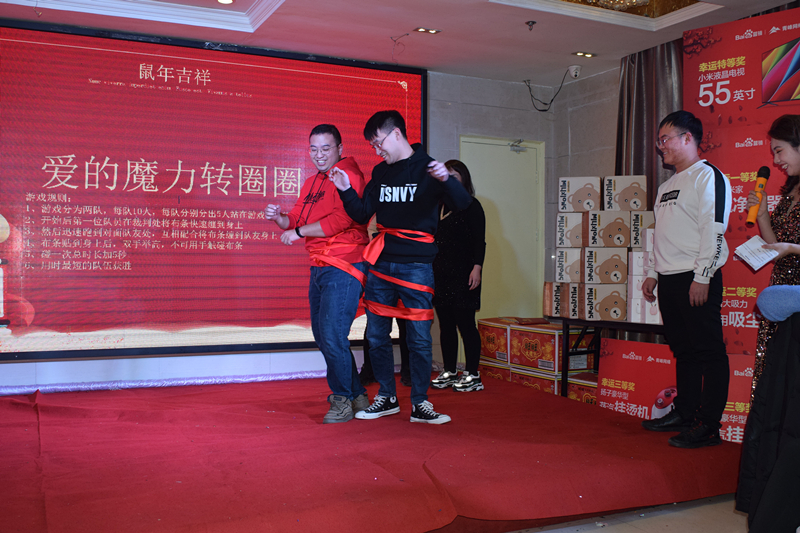 簽到篇 看到嗎?大獎已經準備好了??! 美酒美食上桌 簽到了小伙伴們!! 一聲簽到了,瞬間排起長龍! 美麗帥氣的主持人準備開場! 2020,恭喜發(fā)財,萬事如意,笑口常開! 大獎非你莫“鼠”! 節(jié)目篇 一聲開門紅,開啟節(jié)目篇,將答謝會的熱情推向波高潮!祝福大家來年紅紅火火??! “歌神”一亮相,小迷妹們立刻集結,演唱會模式瞬間開啟, oh my god!唱的也太好聽了吧! 營銷部小品《郵輪風云》,完全顛覆了日常形象, 妥妥的小品“扛把子”誕生了! 吉他彈唱一首《晴天》,把我們瞬間帶進美好的校園愛情的回憶,青峰人真是太多才多藝! 百度推廣部帶我們一起左邊畫個龍,右邊畫一道彩虹,兩個食指就像兩只穿天猴,指向閃耀的燈球!??! 游戲篇 愛的魔力轉圈圈,一條大紅布圈起明年的好運來! 氣球運杯,你來我往,一會兒運氣爆棚! 好運連連,一件大T恤,連接起你我他!happy!! 篇 千呼萬喚篇即將來襲,你可能不知道,大家因為緊張的手都在顫抖! 然而,你可能想象不到,今年的大獎在輪就被抽走了?。?!臺下的小伙伴們,瞬間心死~~~ 他們其中有人歇完產假回來就上了一天班,就拿了一等獎, 還有人前一天晚上說如果我得了大獎怎樣怎樣,然后夸下的??诰屯蝗粚崿F了............ 看到特等獎的劉冉了嗎?我們已經決定組團去他家看電視了........ 哈哈哈哈! 頒獎片 付出總會有收回,小伙伴們來年繼續(xù)加油哇! 等一下,還有我們的神秘大禮 桶桶都旺! 祝愿大家統(tǒng)統(tǒng)都旺啊! 王總致祝酒詞希望大家凝心聚力,再創(chuàng)輝煌! 開啟今天的晚宴嘉年華! 讓我們共同舉杯!迎接2020! 后,祝福大家 鼠年送你大元寶,財源滾滾往家跑; 鼠年送你福滿多,和家幸福好運來; 鼠年送你紅綿襖,身上暖暖心里暖; 鼠年得到祝福多,一年順心萬事和! 新的一年,非你莫“鼠”